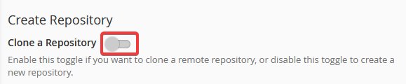 Ukoliko želite da kreirate prazan git repozitorijum, opcija Clone a repository treba da bude onemogućena: